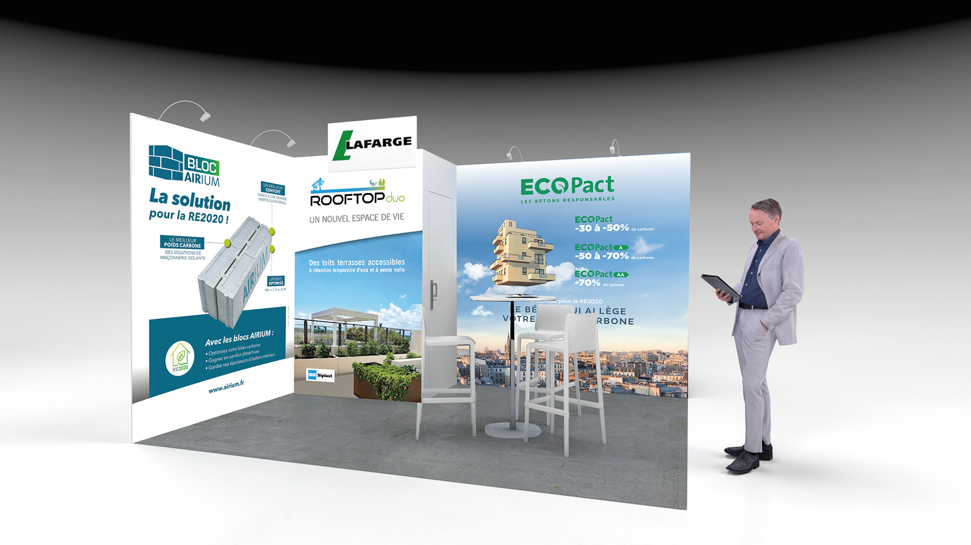 STAND - création graphique des supports PLV des stands LAFARGE en collaboration avec le standiste Clamens